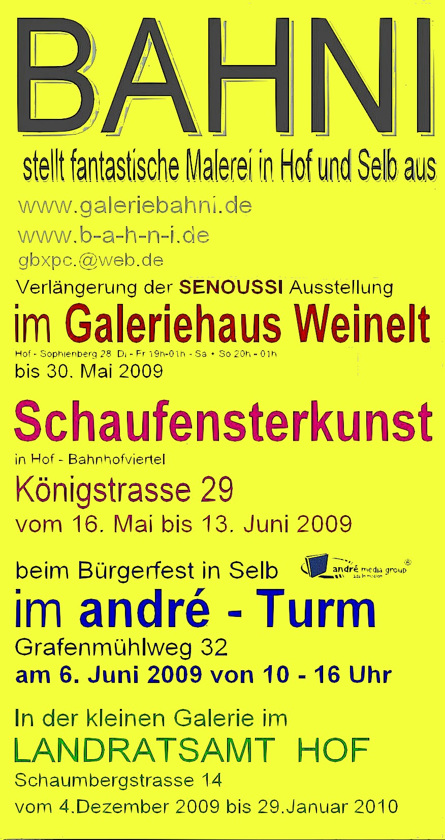 BAHNI ist Maler, Bühnen- und Kostümbildner, er hat seit seinem Studium über 200 Bühnenbilder zum Teil mit Kostümen geschaffen. Mehr als 350 Gemälde meist in altmeisterlicher Technik gemalt und unzählige Zeichnungen.